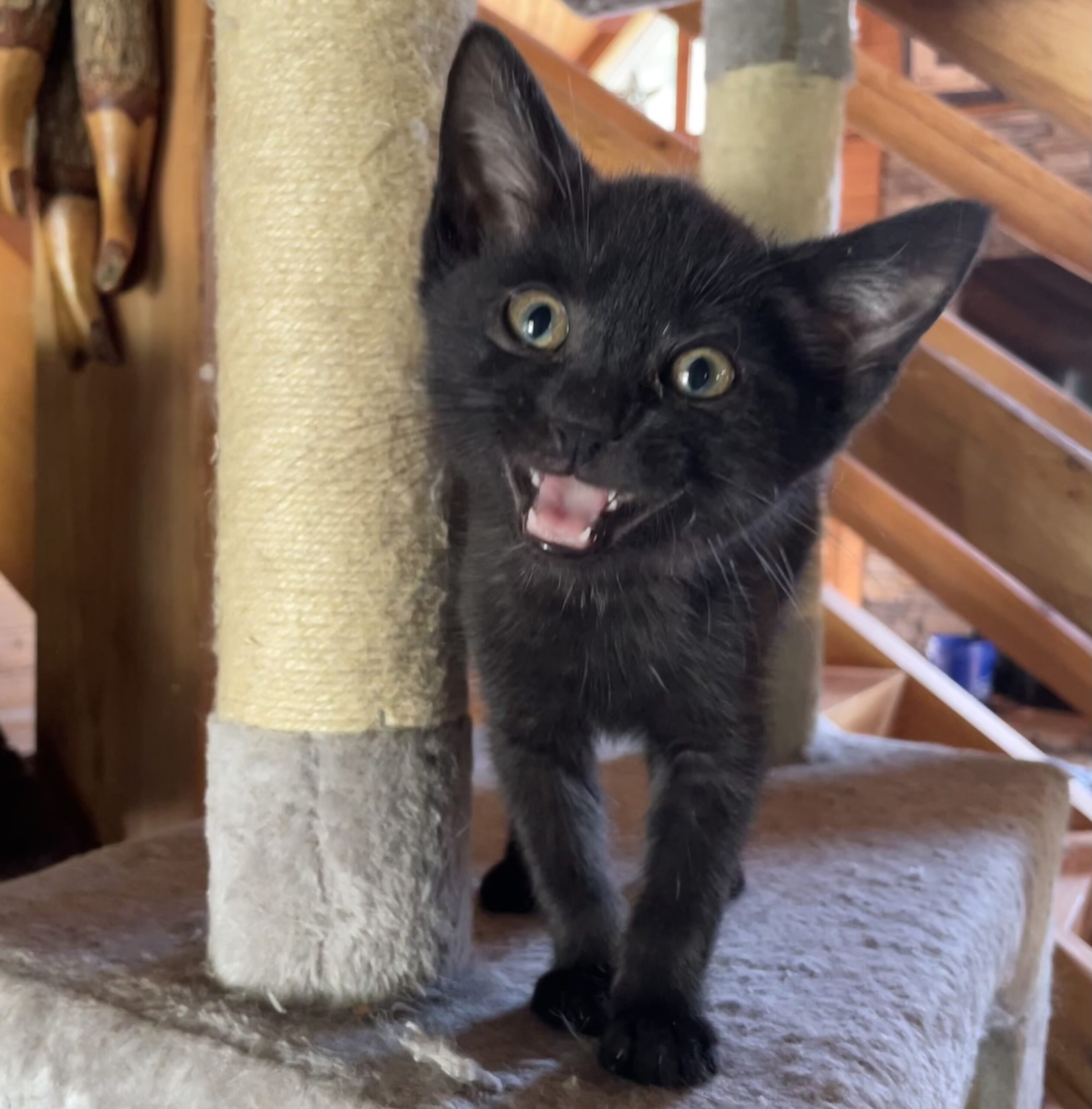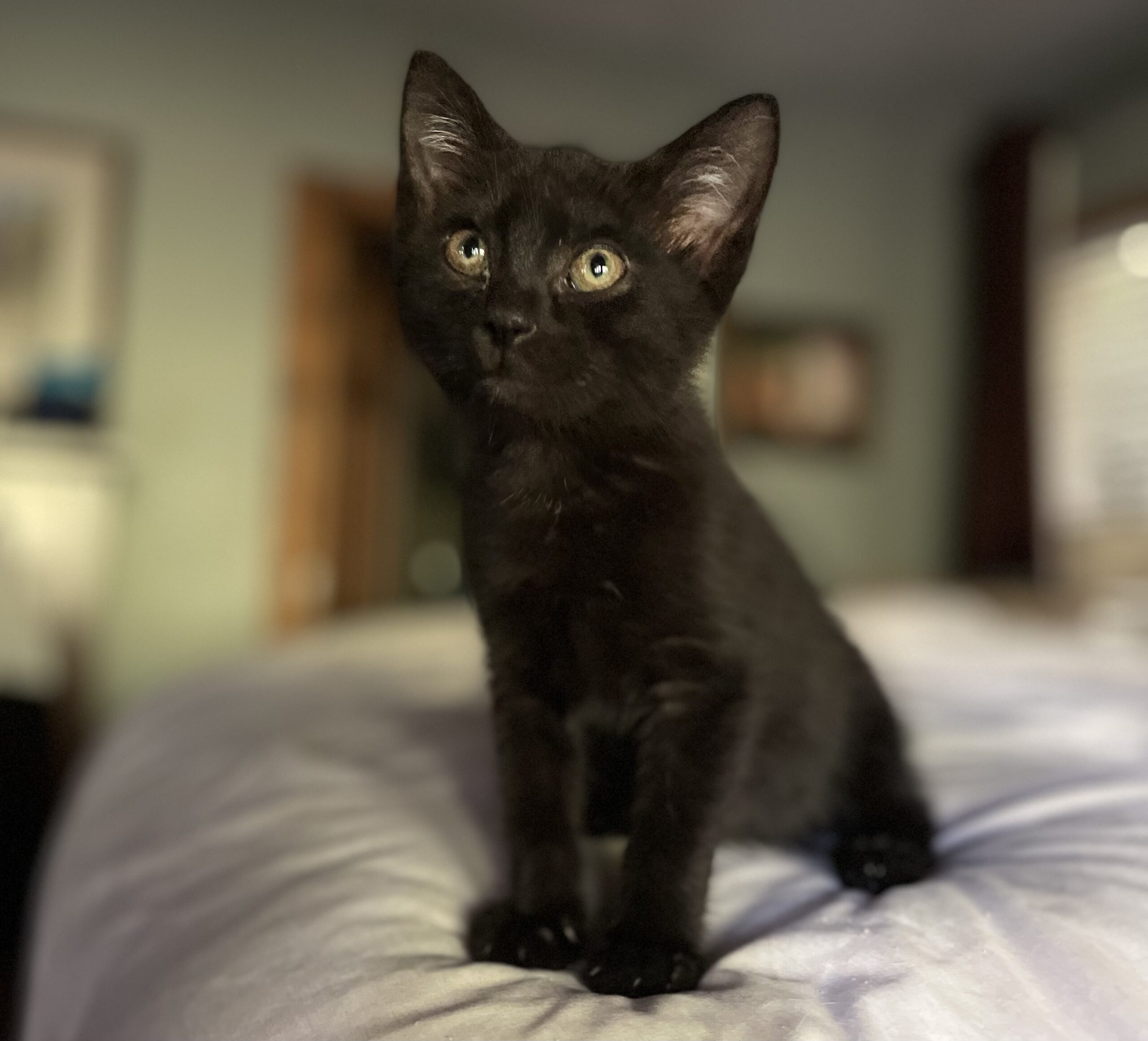 We knew immediatly when we rescued T'Challa during a TNR event that he was special. He immediately snuggled in for affection from the very first time he was picked up. His foster mom says he might be the most cuddliest kitten ever. He loves to burrow onto her neck making biscuits and giving kisses. T'Challa is a confident little guy, playing with the other resident cats and foster kittens. He is also pretty talkative, especially when waiting impatiently for his wet food to be served. T'Challa also lives with two big dogs in his foster home.