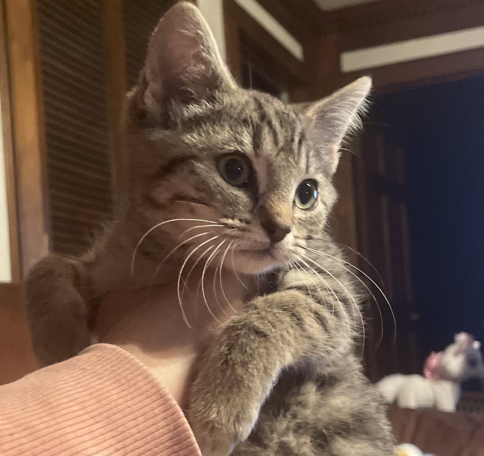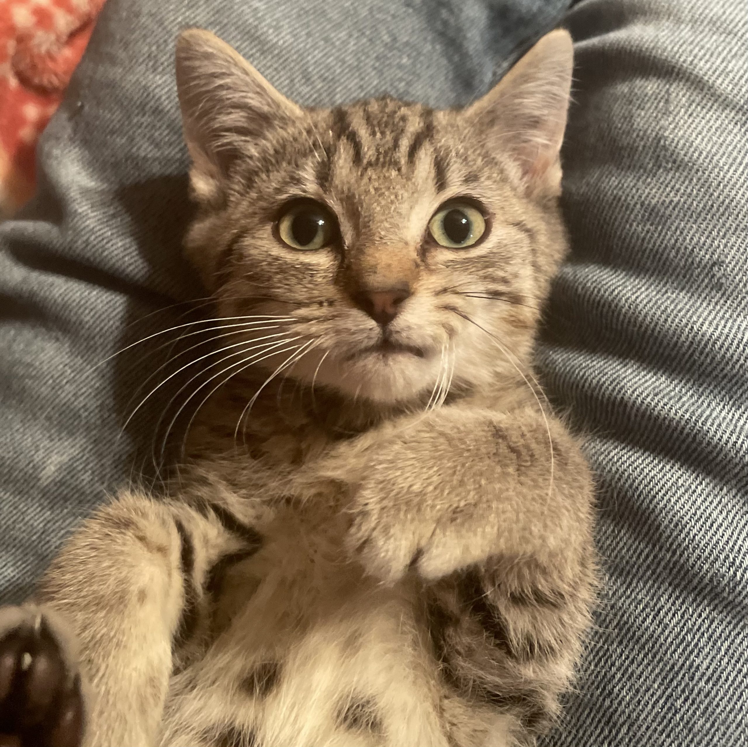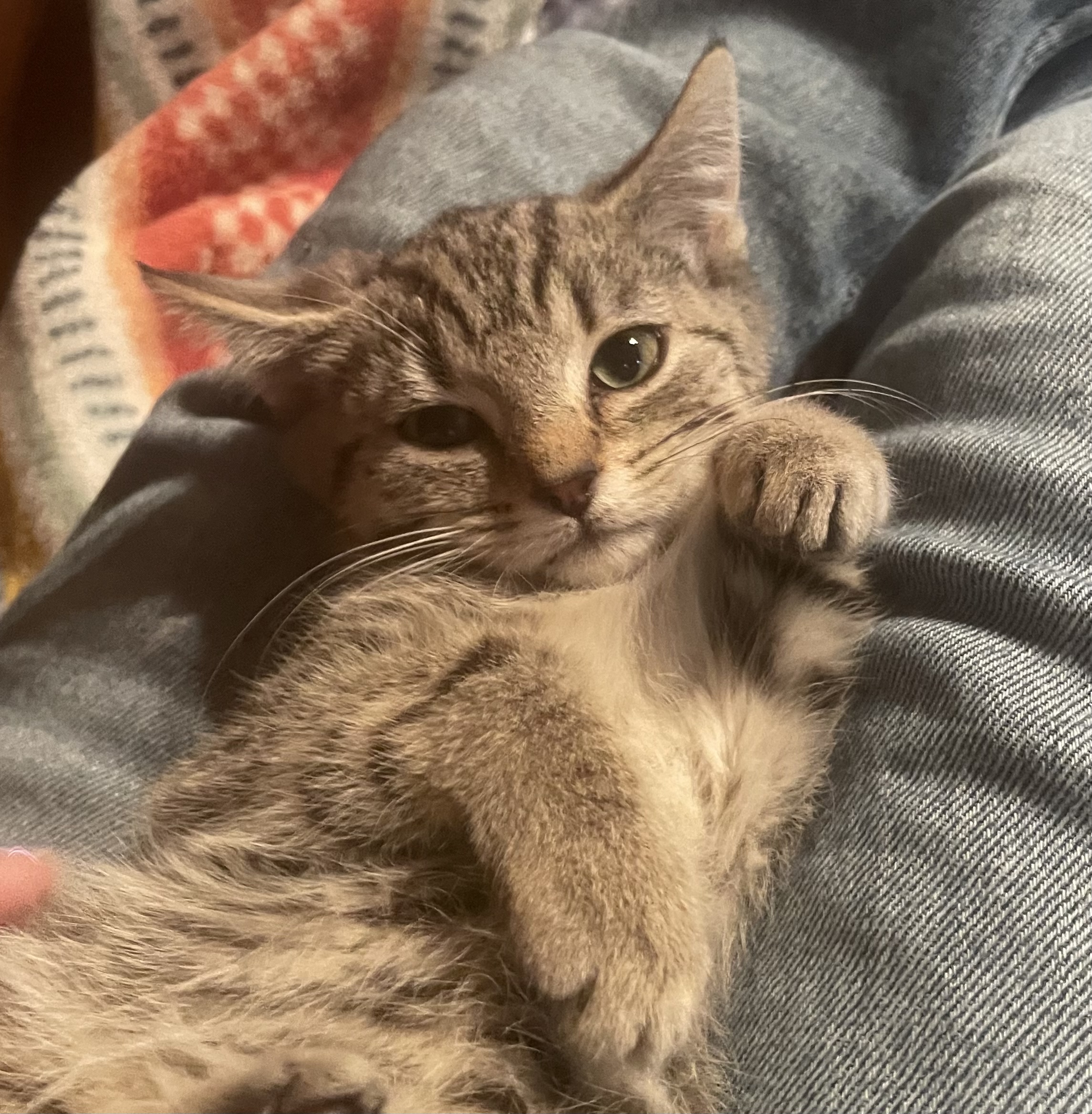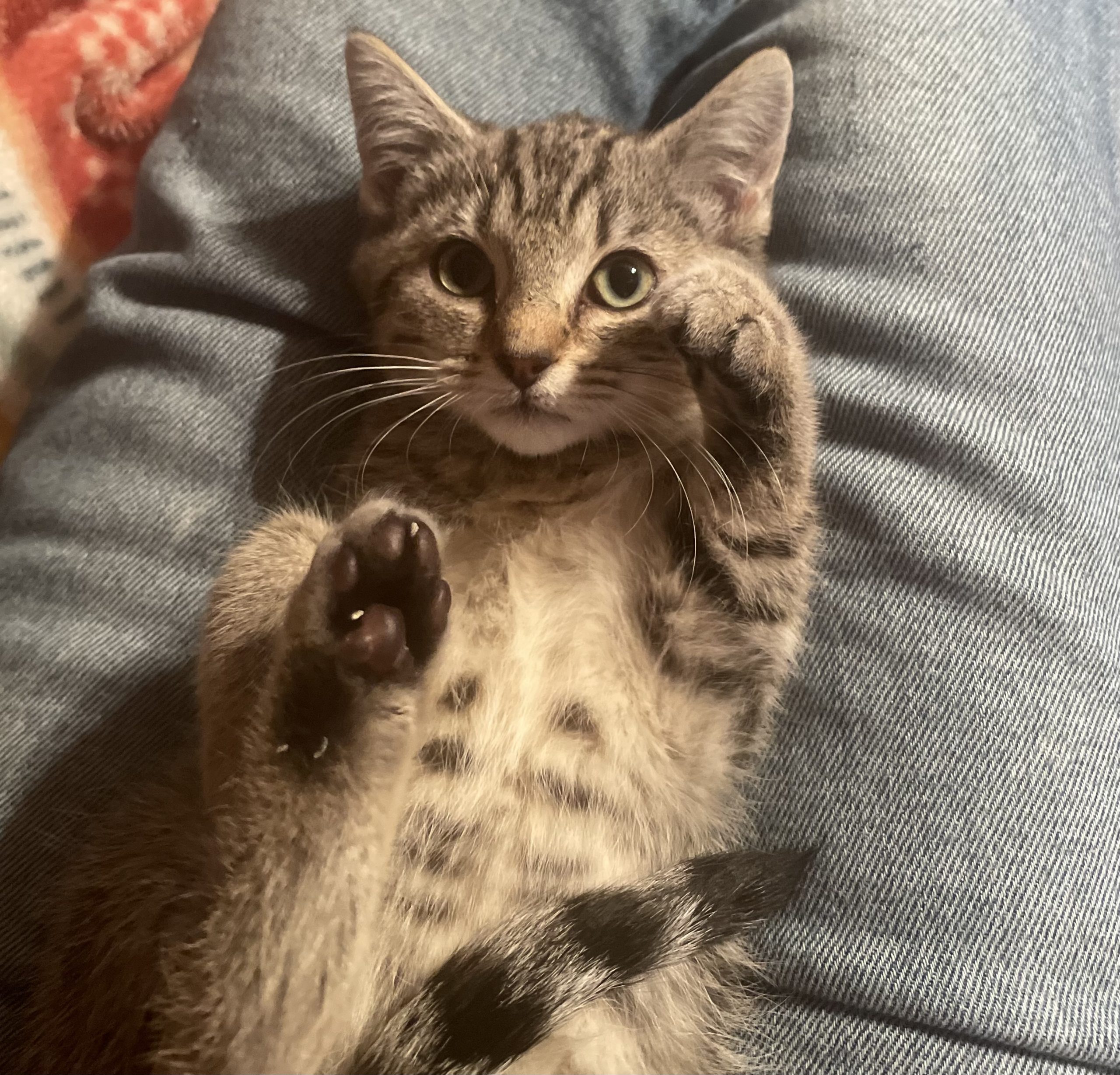 I was rescued during a TNR event. Initially I didn't know I needed to be rescued and didn't want anything to do with people. Even though I hissed and swat at first, my foster mom cuddled me anyway. And I felt safe! I discovered that snuggling and pets were ok and soon I was purring. I also think wand toys are the best. I'm still a little skittish and will need a home that understands I might need help continuing to come out of my shell, but I'm totally ready for it!