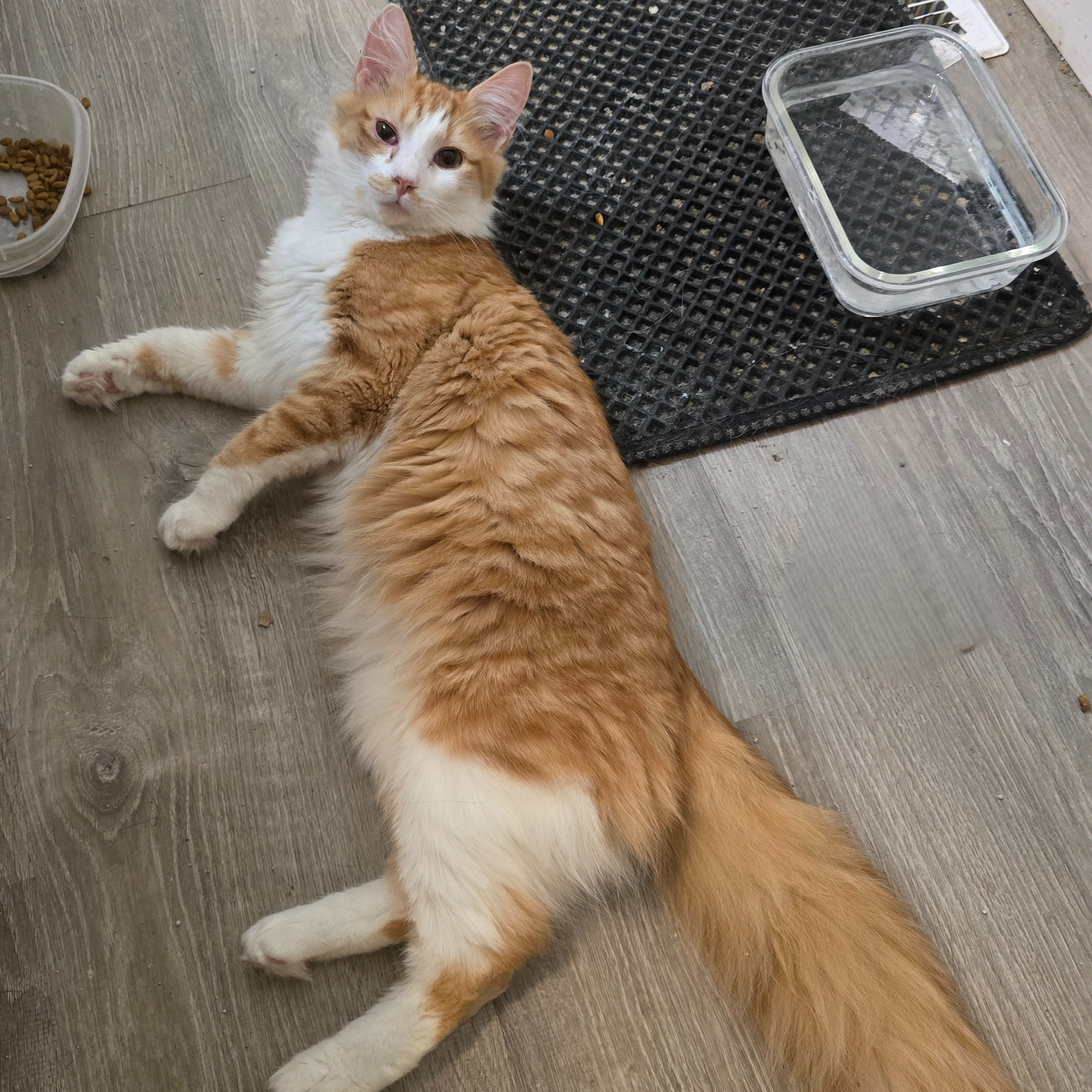 Tim often has that classic “the lights are on, but nobody’s home” expression, and honestly, it just makes him even more lovable. We like to think he’s patiently waiting for his turn with the famous orange-cat brain cell. Bless him.