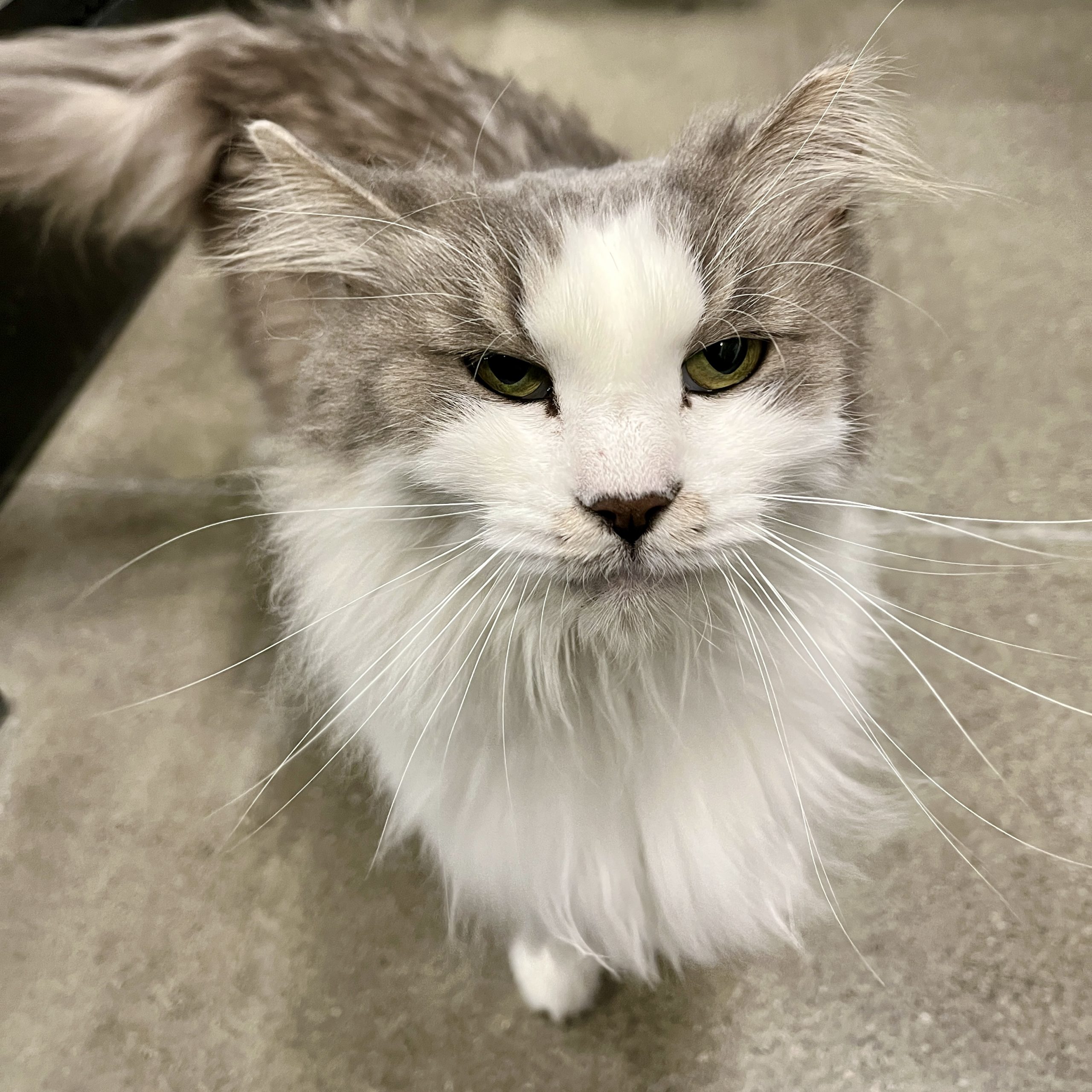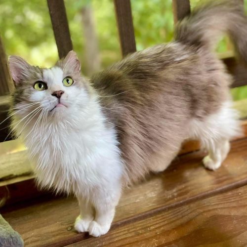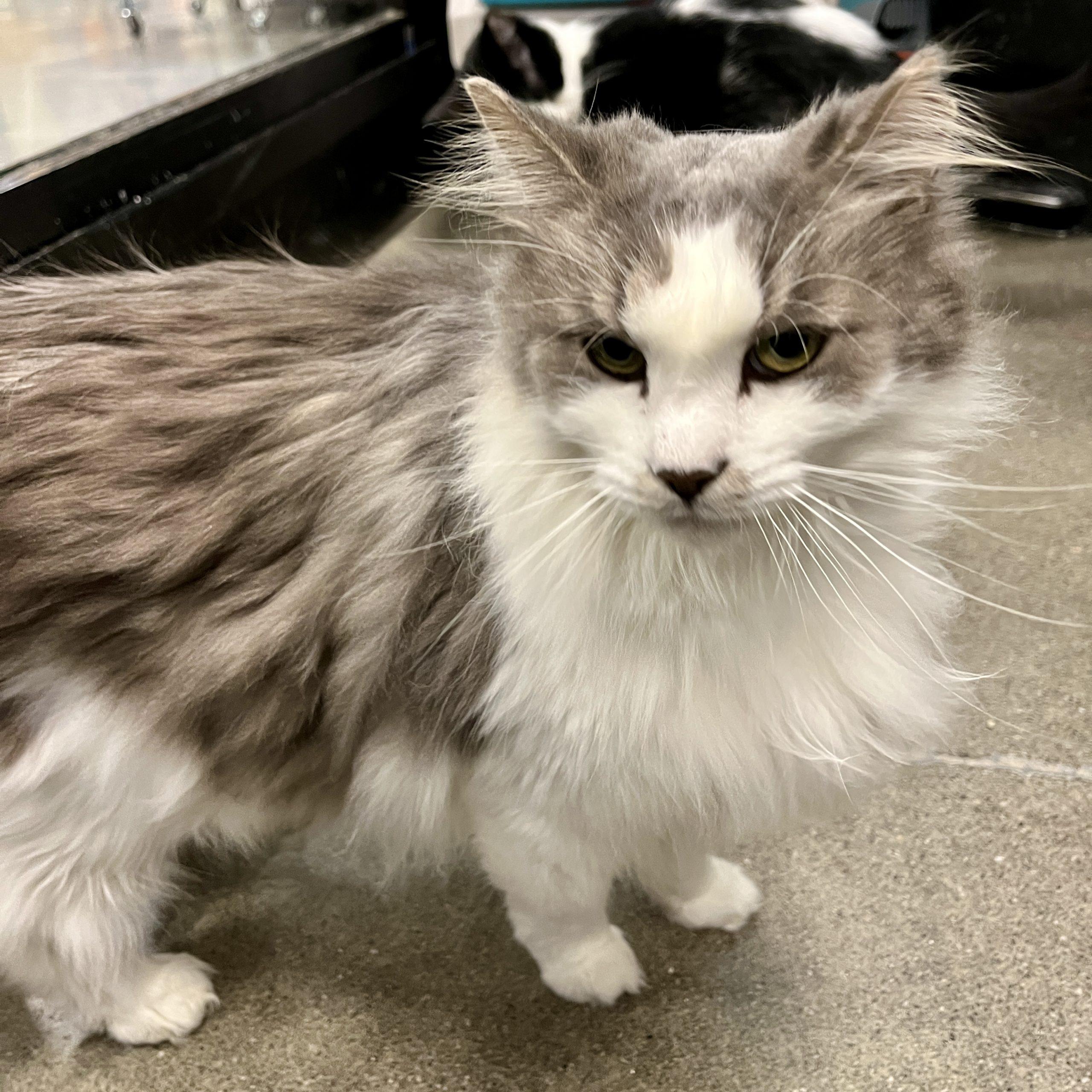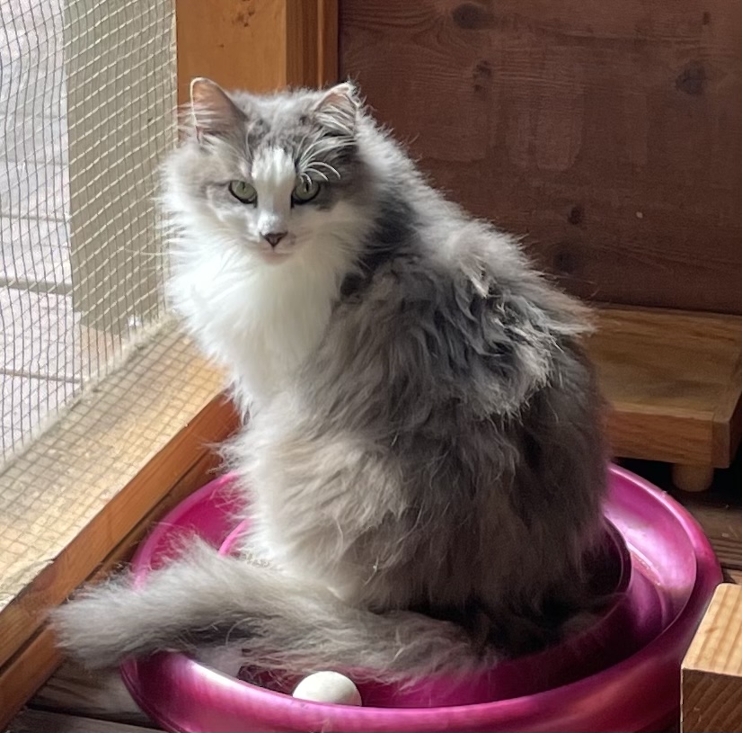 Violet was struggling to hold her own in the colony of cats at the trailer park. When we found her during a TNR operation it was immediately clear she didn't belong there. She was dirty and skinny and in need of care. But look at her now, with her beautiful green eyes and long tangle-free coat! While it might take Violet a minute to feel safe, she is all about the pets and purrs when she does. The best way to get Violet's attention is to show her the brush and she will run to it for grooming. Violet is a quiet, unassuming cat looking for a safe forever home.