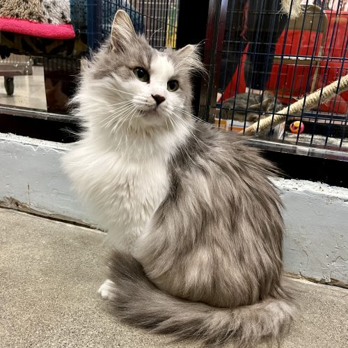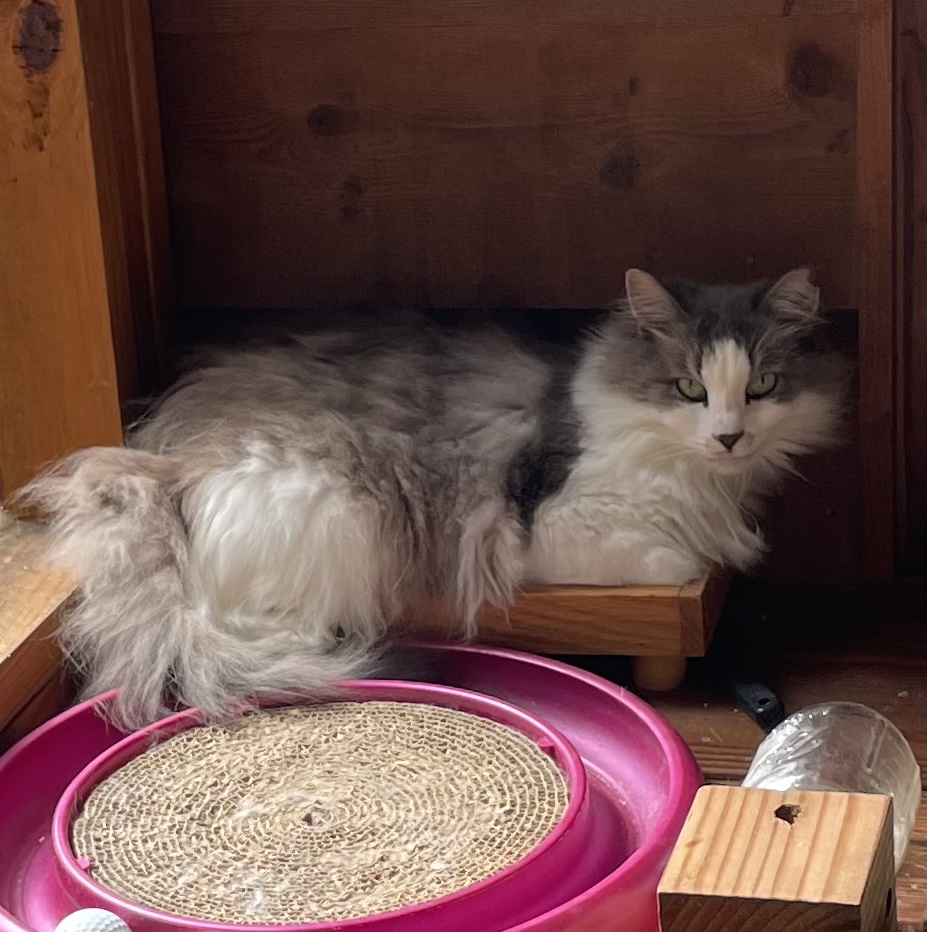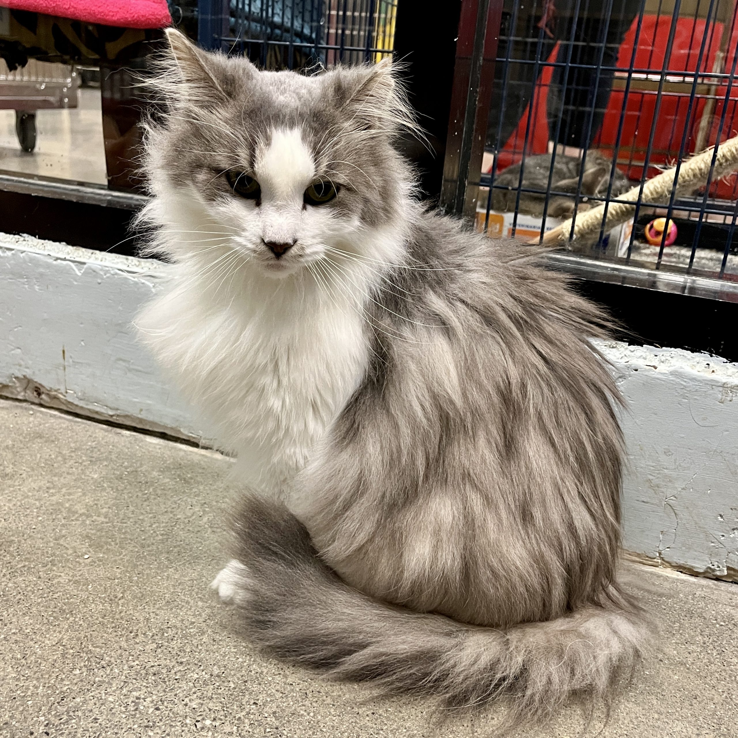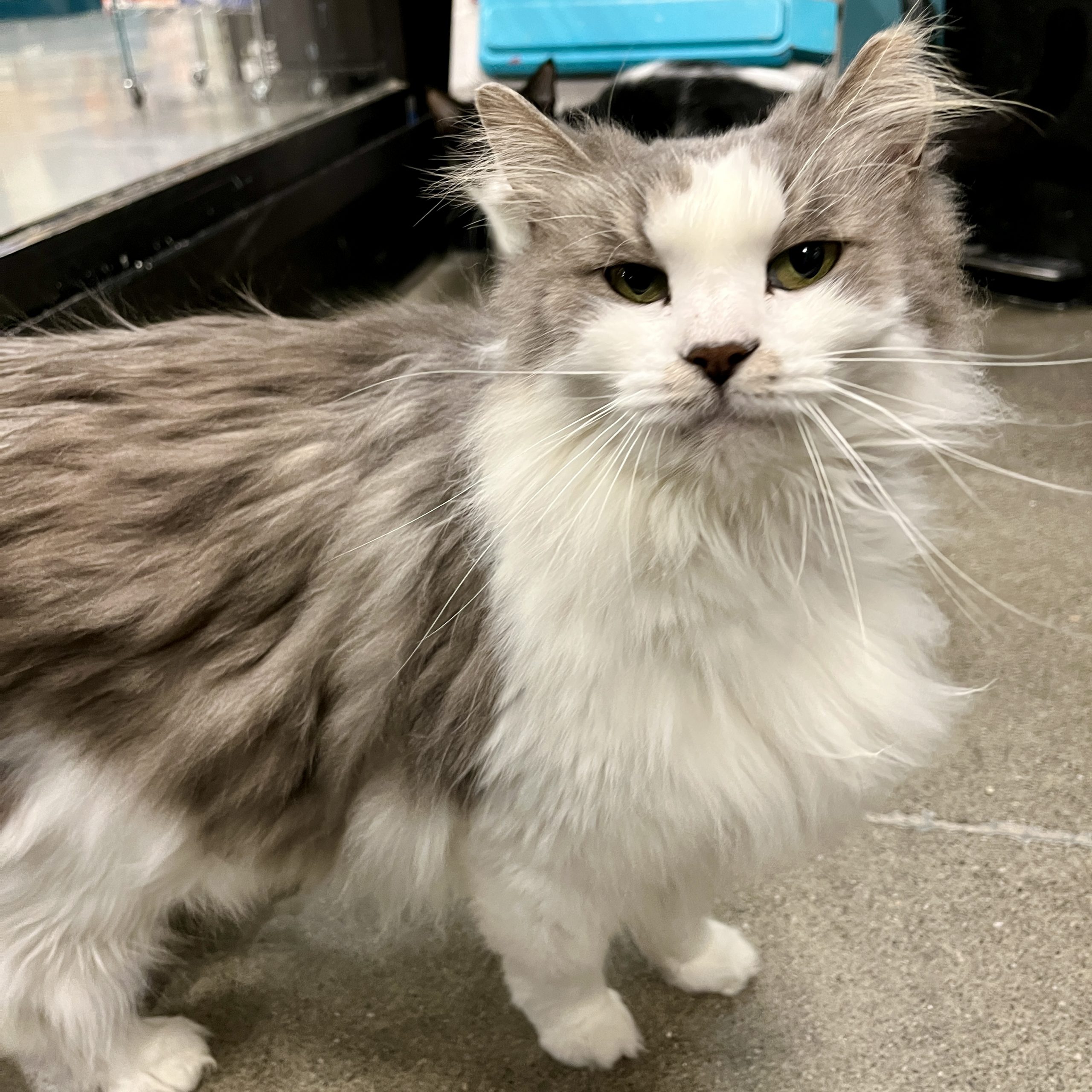 Violet was struggling to hold her own in the colony of cats at the trailer park. When we found her during a TNR operation it was immediately clear she didn't belong there. She was dirty and skinny and in need of care. But look at her now, with her beautiful green eyes and long tangle-free coat! While it might take Violet a minute to feel safe, she is all about the pets and purrs when she does. The best way to get Violet's attention is to show her the brush and she will run to it for grooming. Violet is a quiet, unassuming cat looking for a safe forever home.