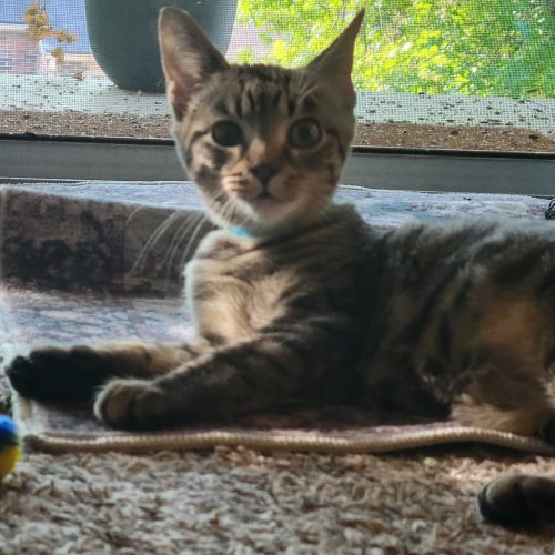 Will was the runt of his litter but he has grown so well. He is full of energy and loves to play. When he gets pets or picked up he purrs louder than any of his siblings. He really is the sweetest little boy.
