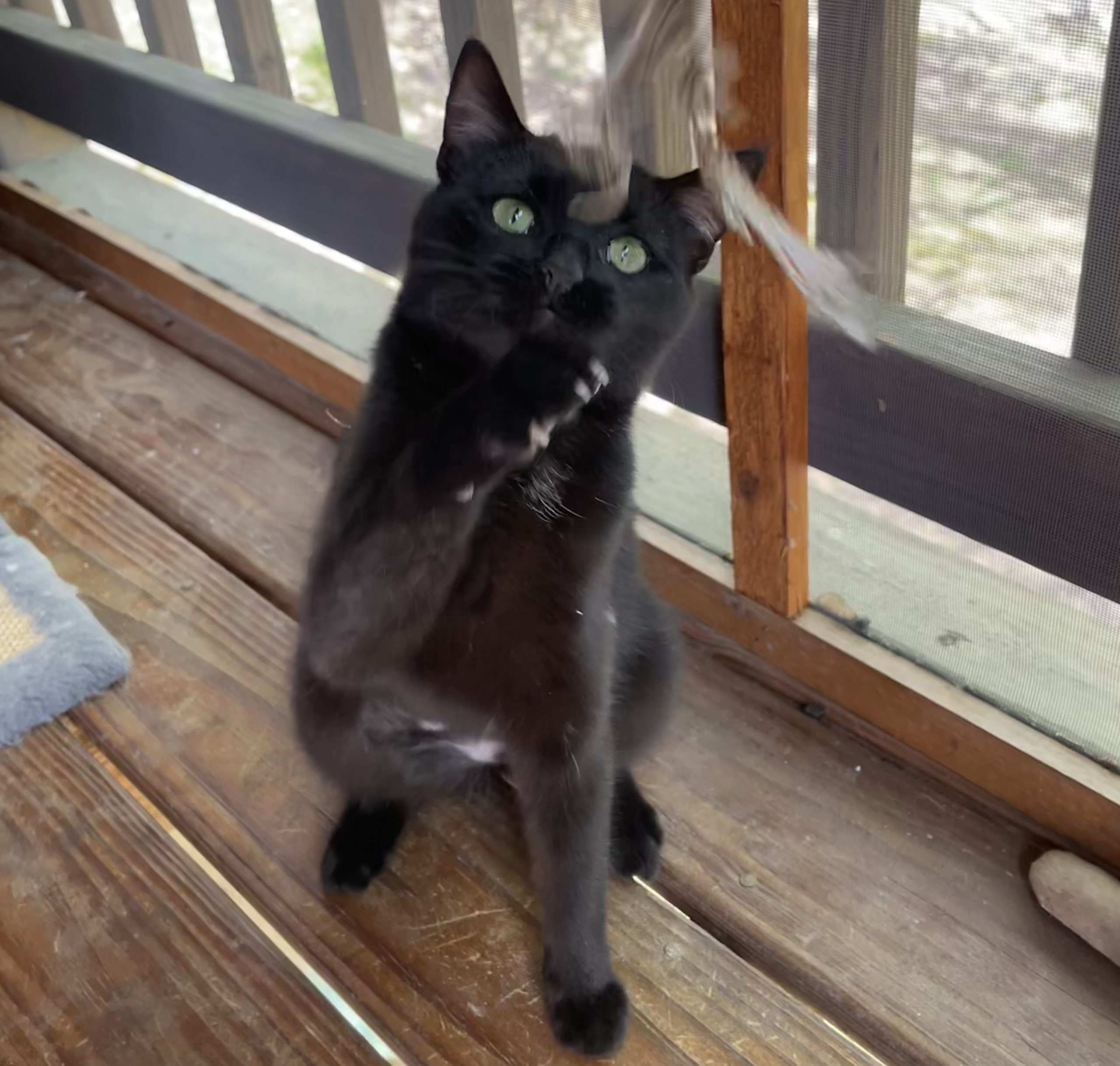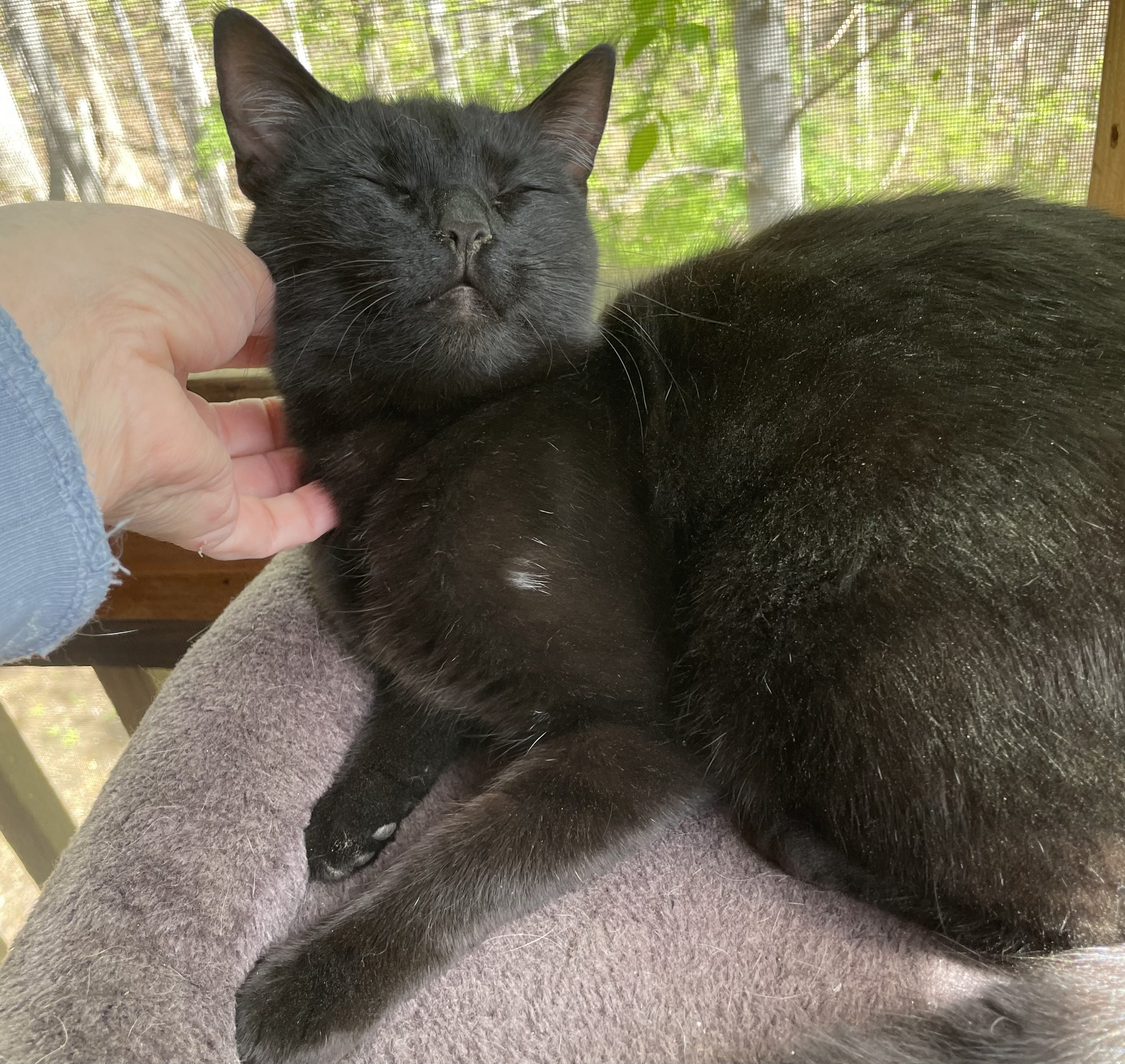 Willowbee was rescued from a local trailer park during a TNR mission alongside her friend, Scarlet. Known for charming residents for scraps, this sweet girl has left her scavenging days behind for a life of play.