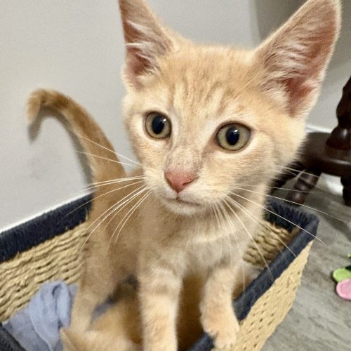 Woody is quickly adapting to foster life and becoming more and more brave and affectionate. He loves to eat and is the first to run to the door looking for more kibble and pets! He’s also adjusting well to a noisy dog that lives in the room next door. He and Buzz are great together but woody would do fine as a solo cat as well.